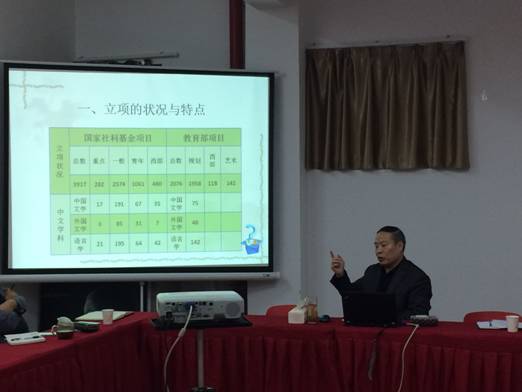 根据澳门信誉最好十大平台2018年高层次项目申报工作部署,澳门十大信誉网赌大全充分利用专家资源,提升本院的科研水平。2017年10月25日,特请陕西师范大学文学院原院长李西建教授在江北2209会议室,为十大信誉网赌全体教师做了“如何提高社科项目申报的质量与效果”的学术报告。本次学术报告是十大信誉网赌本学年重要的科研系列活动之一。澳门十大信誉网赌大全党总支书记王辉、副院长雷升录、鲍丽、孙海洋及美术学、音乐学、艺术设计专业全体教师参加了本次活动。活动由雷升录副院长主持。