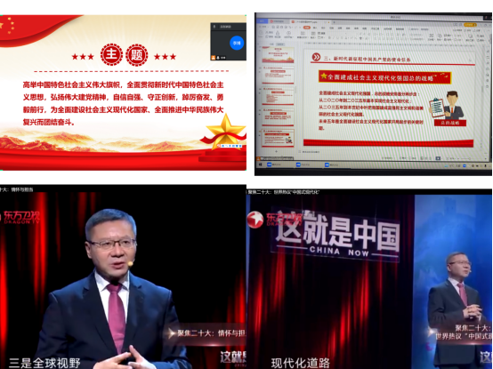 在宣讲中,辅导员们在学深悟透党的二十大精神基础上,立足自身实际,认真准备、精心组织宣讲。围绕深刻领会党的二十大的重大现实意义和深远历史意义;深刻把握党的二十大大会主题;深入学习领会过去五年工作和新时代十年伟大变革的重大意义;弘扬伟大建党精神;深入学习领会习近平总书记对广大青年的教诲等方面进行了深刻解读和阐述,既有深入浅出的理论阐释,也有联系实际的生动事例。有的结合《这就是中国》—聚焦二十大专题节目,有的则结合疫情防控形势宣传党的二十大精神,通过多渠道、多形式、多载体的宣讲活动,在全体学生中掀起了学习宣传贯彻党的二十大精神热潮。