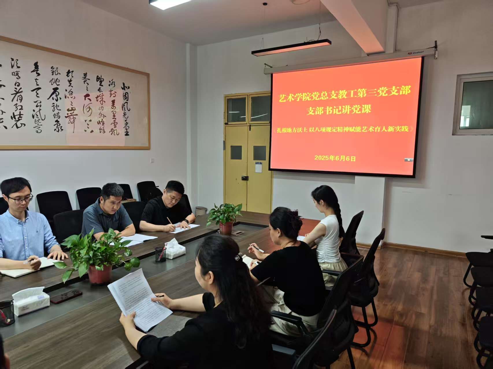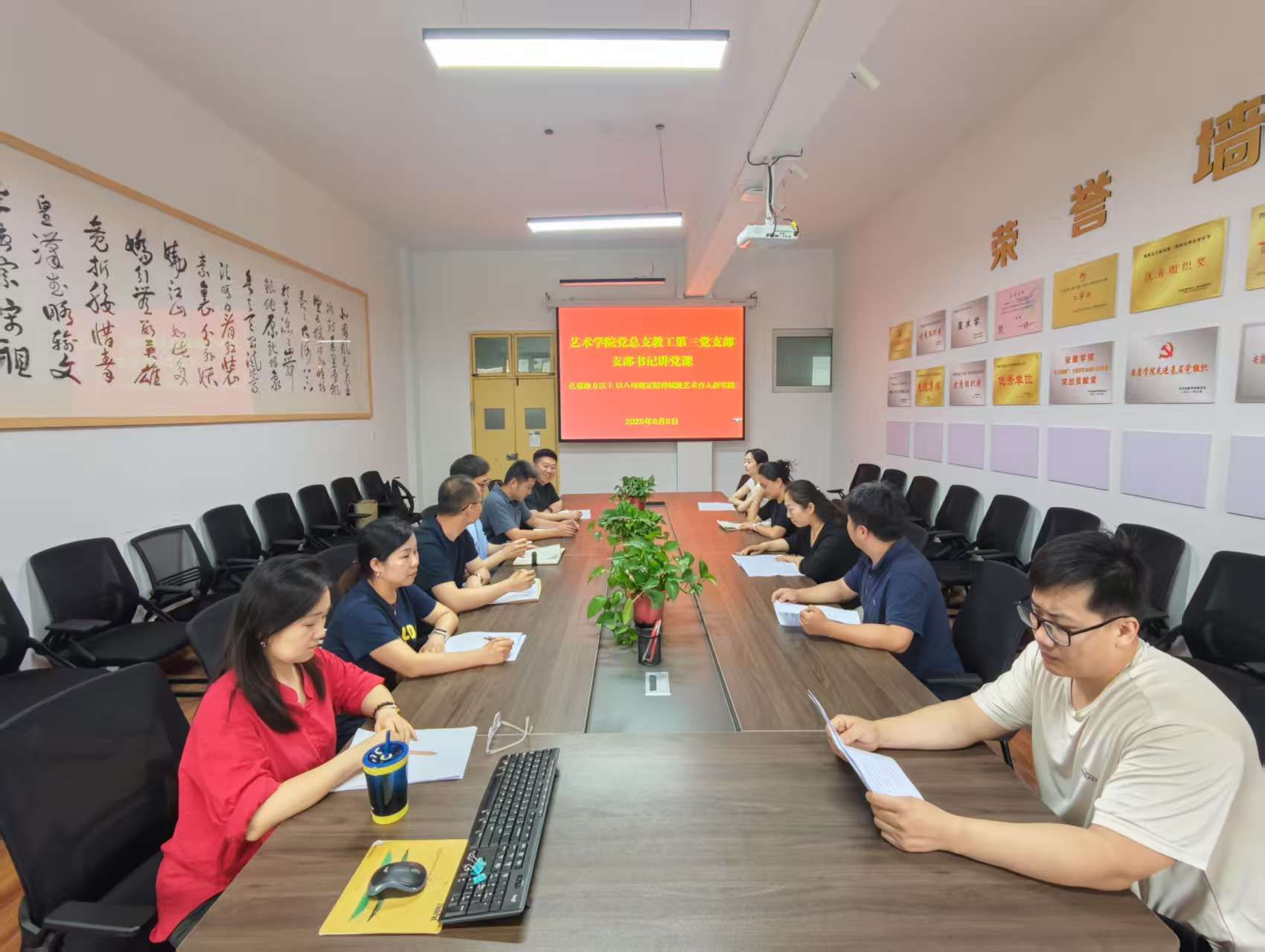 会上还提出了党员教师要密切联系学生,关注学生的艺术成长需求,做到因材施教,以良好的师风师德为学生树立榜样,通过与学生的深入交流,了解他们在艺术学习中的困惑与期望,为学生提供更精准的指导和帮助。