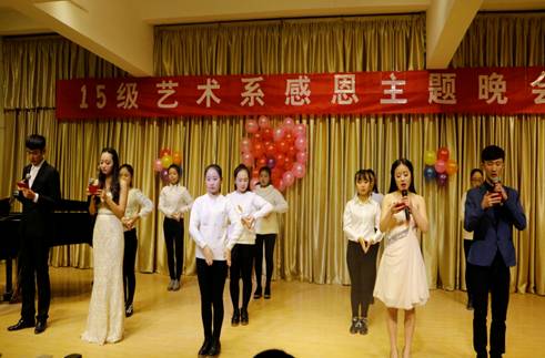 感恩教育作为大学生思想政治教育的新路径,为促进学生全面发展,实现德育目标,建设和谐校园,构建和谐社会提供有力保障。根据校团委关于在2015级新生中开展感恩教育活动的工作安排,艺术系团总支在校团委、系党总支的领导下,认真贯彻,积极开展以“感恩存心,有爱为伴”为主题的感恩系列活动。2015年11月25日晚,我系2015级音乐学专业在江北校区1401教室举行感恩主题晚会。参加晚会的有系党总支书记冯丰收、系学工办主任刘泽桢、2014级辅导员艾蕾、2015级辅导员鲁澧以及2015级全体同学。