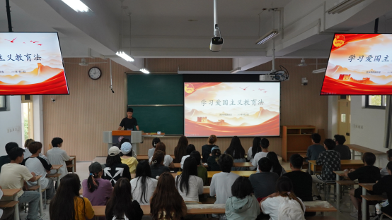 随后,团总支副书记柳扬同学带领全体团员青年共同学习了《爱国主义教育法》,同学们全神贯注,认真学习关于爱国主义教育法的解读。法律明确了爱国主义教育的内容涵盖国家历史、文化传统、民族精神等多个方面,让同学们深刻认识到祖国的伟大和自己肩负的责任。同时,法律也规定了学校、家庭、社会等各方面在爱国主义教育中的职责,为形成全方位、多层次的爱国主义教育格局提供了有力保障。这部法律犹如一座灯塔,为新时代的爱国主义教育指明了方向。通过学习,同学们了解到爱国主义教育的重要意义、目标任务以及具体实施方法。