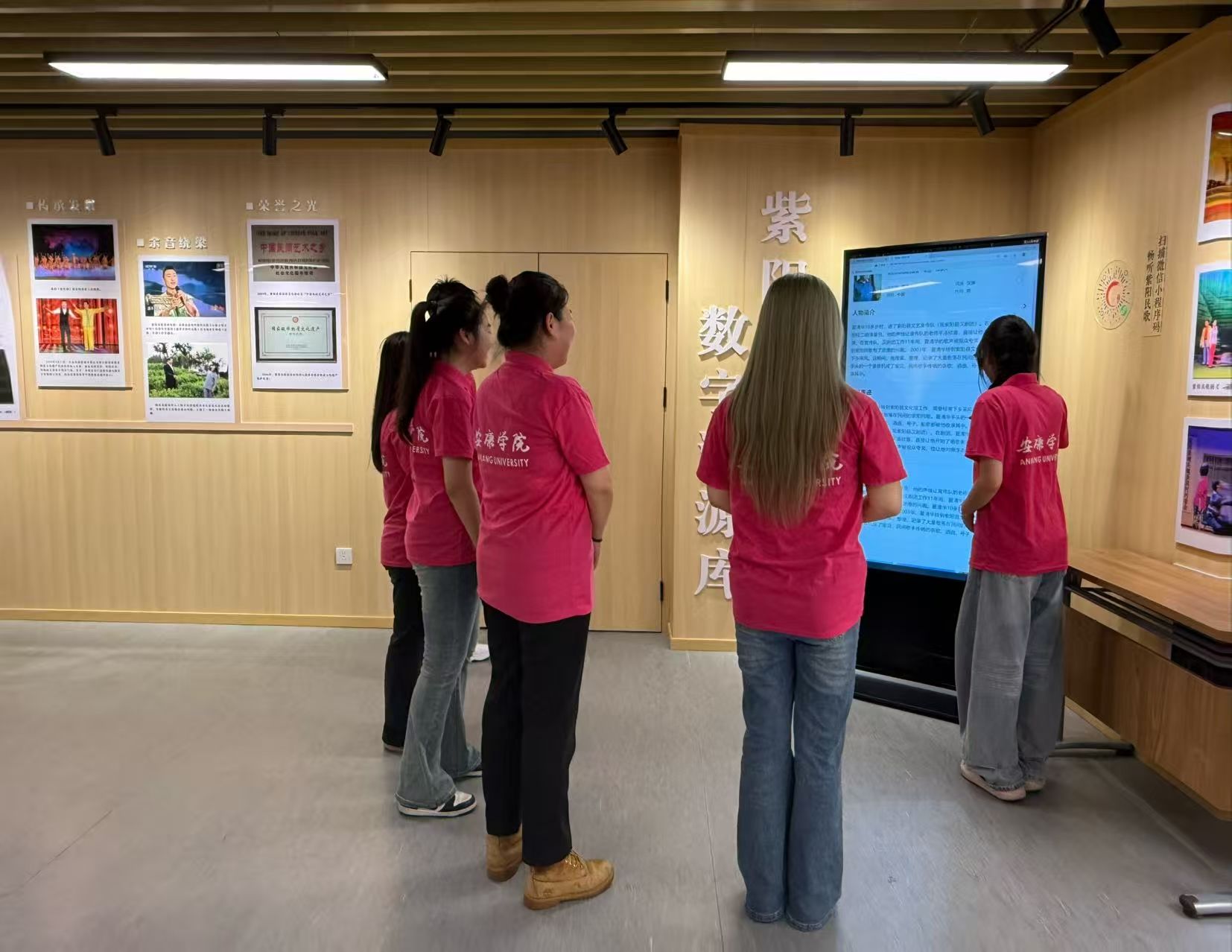 小组成员们在紫阳县文化馆调研后,深受触动,收获颇丰。这座始建于1950年,如今已是国家级二级馆的文化馆,承载着紫阳深厚的文化底蕴,在当地文化传承与发展中扮演着举足轻重的角色。馆内走廊两侧陈列的大量反映紫阳当地风土民情的摄影作品,展示了紫阳独特人文风情。馆内丰富的实物、图片与影像资料,系统地展现了紫阳从古代到近现代的发展历程,尤其是当地特有的茶文化、民歌文化与民俗风情,令人目不暇接。紫阳民歌作为国家级非物质文化遗产,其独特的“三声腔体系”,高腔穿云、平腔叙情、破腔泣诉 ,随着方言音韵流转,感受到了陕南人民“苦中作乐、向死而生”的精神。