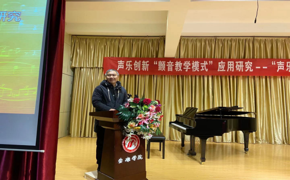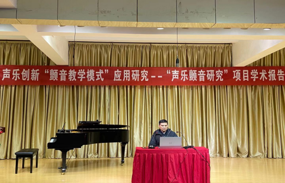 2021年1月6日下午2:30,十大信誉网赌音乐学专业学科带头人范义付副教授在江北校区1401演艺厅为师生作题为“声乐创新‘颤音教学模式’应用研究”学术报告,副院长孙海洋主持报告会。