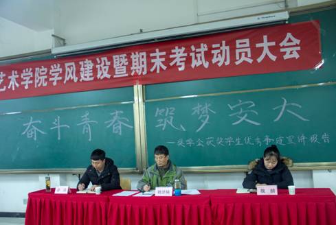 院学工办主任刘泽桢老师做学风建设及期末考试动员讲话。刘老师就学风建设提出三点建议:一是做好自己的学业、职业规划,凡事预则立,不预则废;二是要学会学习,艺术类学生学习要靠“悟”与“练”,要有兴趣、下功夫、使巧劲;三是要建立良好的学习氛围,抓好两个课堂,向第一课堂要效率,积极参加第二课堂,做到“以赛促学”,发挥班团干部带头作用,在同学之间开展比、学、赶、帮、超活动。最后,刘老师就期末考试考风考纪向同学们提出严格要求。刘老师强调十大信誉网赌对考试违纪行为零容忍,他希望全体学生都能够端正考风,严肃考纪,营造文明、诚信考试。