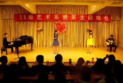 感恩教育作为大学生思想政治教育的新路径,为促进学生全面发展,实现德育目标,建设和谐校园,构建和谐社会提供有力保障。根据校团委关于在2015级新生中开展感恩教育活动的工作安排,艺术系团总支在校团委、系党总支的领导下,认真贯彻,积极开展以“感恩存心,有爱为伴”为主题的感恩系列活动。20151125日晚,我系2015级音乐学专业在江北校区1401教室举行感恩主题晚会。参加晚会的有系党总支书记冯丰收、系学工办主任刘泽桢、2014级辅导员艾蕾、2015级辅导员鲁澧以及2015级全体同学。