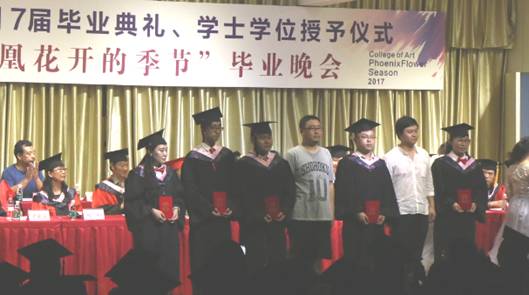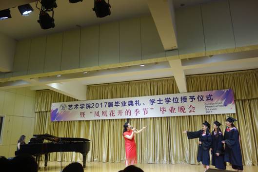 六月注定是一个分别的季节,无论毕业大戏多么的华丽,绚烂过后,他们即将与我们挥手告别。晚会邀请了校友周翰祥为大家演唱了歌曲《凤凰花开的路口》,同学们随着歌声,用复杂的心情告别熟悉的校园,告别昔日的同窗,告别了一段纯真的青春,一段年少轻狂的岁月,一个充满幻想的时代……所有的话语都化作歌声传达出来,在难舍难分的气氛中,教师代表冯宏钊等十几名同志现场为毕业生赠送了小礼品——毕业寄语卡片。