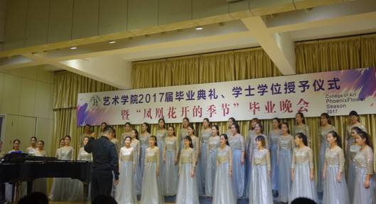 院学生会干部原创的诗朗诵《凤凰花开的路口》,勾起了2017届毕业生对四年生活的回忆,四年前,大家相遇相知,温暖胸膛、怀揣梦想;四年里,大家共同努力,激越青春、欢乐成长;四年后,即将天各一方,各自打造梦想的天堂,不要让泪水打湿容颜,火热激情即将绽放当晚,让我们的心于空中翱翔,在青春的蓬勃下生长,在岁月流光中温暖启航。