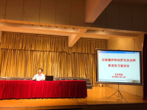 7月11日下午3点,澳门十大信誉网赌大全在江北1401演艺厅召开了“赴新疆伊犁哈萨克自治州教育实习”动员大会,学院党政领导班子和学工团队及2015级美术学、音乐学全体学生共计200余人参加了此次动员大会。会议由澳门十大信誉网赌大全院长杨哲主持。