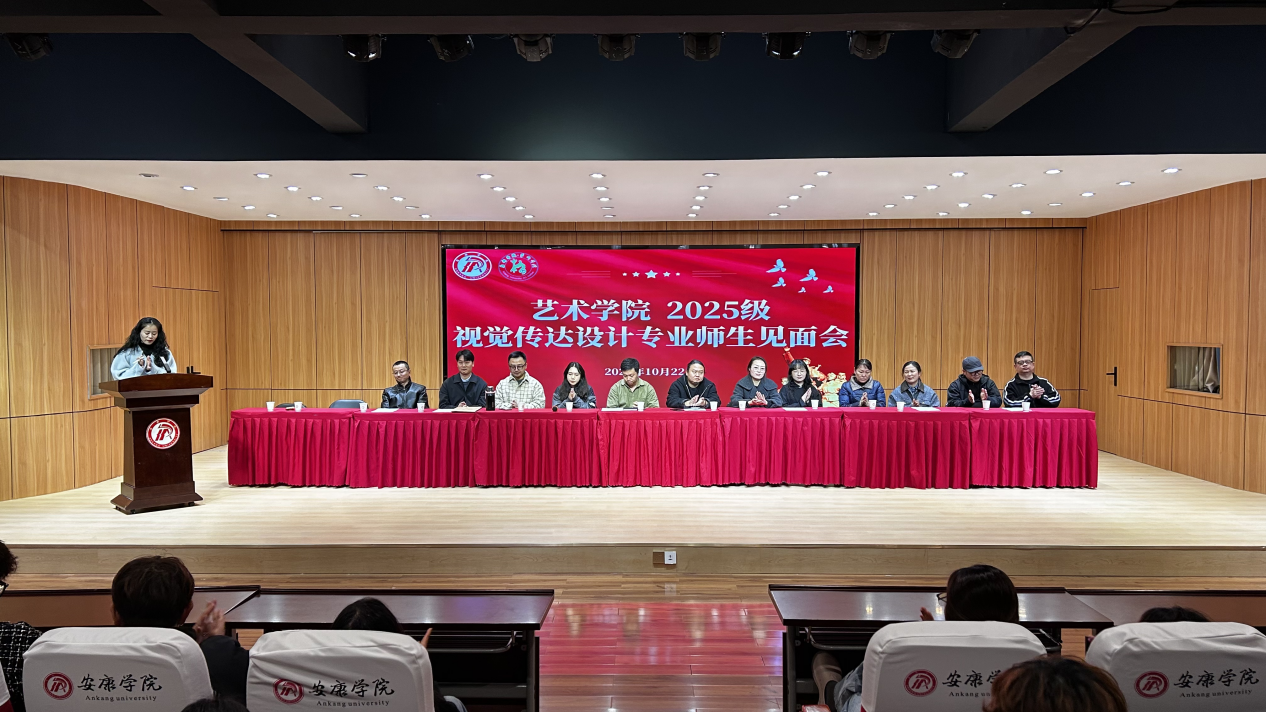 10月22日下午,澳门十大信誉网赌大全在1401演艺厅举办了2025级新生视觉传达设计专业师生见面会;主要目的在于搭建师生沟通桥梁、助力新生明晰专业方向。参会的有设计专业全体教师、2025级新生。活动由学工办主任邱青晓主持。