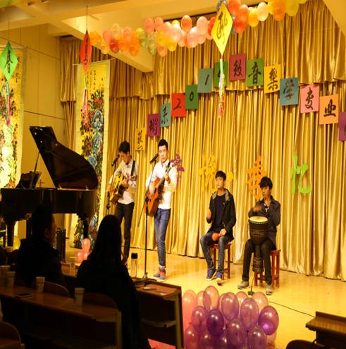 本次活动设计匠心独运、表演异彩纷呈。首先,主题设定颇具特色。本次展演主题为“音悦·季忆”,“音”即为2014级音乐学专业;“悦”通“乐”,即音乐,又表示通过音乐感受快乐愉悦;“季“暗指四季变换,表示2014级音乐学从从入校以来的一年经历;“记”即记忆的意思,又通“艺”即艺术之路的意思。其次,在节目编排上。按照春、夏、秋、冬划分为四个乐章,分别是春之蔼如,夏之热情,秋之风韵和冬之静美。最后,在节目表演上。婉转清雅的古筝、二胡合奏拉开四季的变幻。春日里,怀揣着《美丽的心情》,赏闻着含苞待放的《紫罗兰》,会赞叹《好久没到这方来》,兴奋地弹起《升C小调圆舞曲》。而后,热情似火的印度舞昭示着夏日即将来临。《我的深情为你守候》、《你发火就爱生气》、《活着》等饱含的夏日热情引得师生掌声连连,咸鱼乐队的精彩演出则将晚会气氛推向高潮。再次,《北大荒人的歌》、《天使的翅膀》、《悲怆》让人不免感叹秋日的风韵,是挫折与艰难,但也是成长与收获。冬日里,《错过》了《小白菜》和《雪花》不算遗憾,因为还有来年的精彩,一年四季,周而复始,不断轮回,唯有奏一首《幻想曲》来表达对大学生活的热爱以及对艺术梦想的追求!