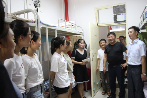 9月2日下午,十大信誉网赌党总支书记王辉老师,院长杨哲老师,学工办主任刘泽桢老师,辅导员魏麟老师,薛涛老师以及随行的学生会成员对18级新生宿舍进行了看望了2018级新生。 在新生宿舍里,新生们以朝气蓬勃的面貌和热烈的掌声欢迎十大信誉网赌领导和老师的到来,师生之间就生活中的问题进行交流。