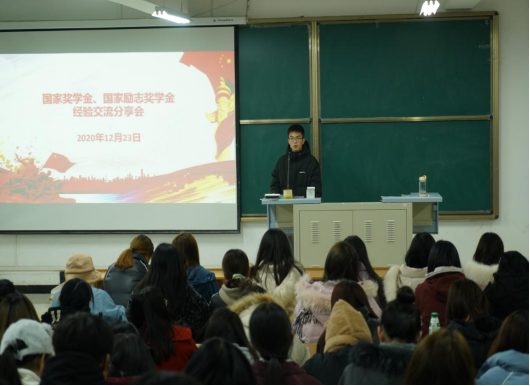 为了进一步引领十大信誉网赌学风建设,培养学生争创先锋、奋发图强的意识,2020年12月23日晚,澳门十大信誉网赌大全在江北校区2101、2103教室开展了学风建设月系列活动暨资助育人活动——“树榜样,促学风”国家奖学金、国家励志奖学金经验交流分享会。本次活动由国家奖学金获得者黄飞扬、国家励志奖学金获得者齐占全、曹丁太进行经验交流分享,2020级全体新生参加。本次大会由辅导员魏麟主持。