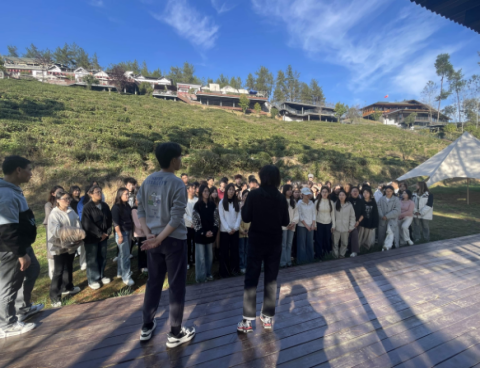下午,师生一行来到了紫阳茶山进行采风活动。紫阳的茶歌影响力较大,采茶是茶歌艺术重要的来源。在这里,学生聆听了教师的讲课,并进行了紫阳民歌的排练和表演。深入茶园、演唱民歌,使学生深受教育。