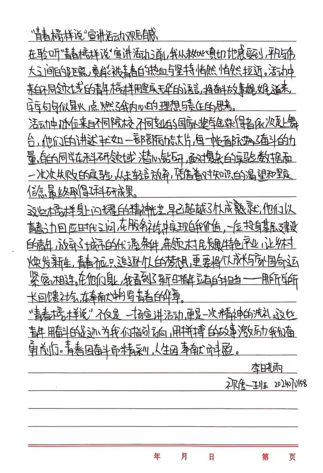 活动中,来自不同专业、不同领域的优秀学生代表依次上台进行宣讲。他们中有的是学业成绩优异、多次荣获国家级奖学金的“学霸”,有的是在各类大赛中斩获大奖、展现专业才华的“学术之星”,还有的是积极投身志愿服务、热心公益事业的“奉献先锋”。这些青春榜样们用质朴的语言、真挚的情感,分享了自己在大学期间的学习经验、奋斗历程和成长感悟。他们讲述了如何在面对学业压力时保持积极心态,以及如何在志愿服务中实现个人价值。他们的故事生动展现了新时代青年学子昂扬向上的精神风貌,赢得了现场同学们的阵阵掌声。