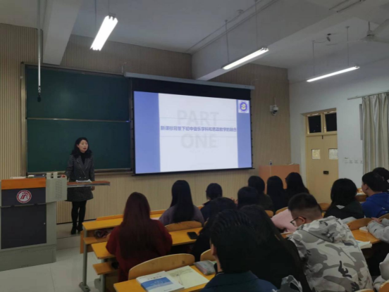 刘老师的讲座以《新课标背景下初中音乐学科和思政教学的融合》为题,她讲到音乐教学与思政教育在本质上都能够促进学生思想道德层面的发展,两者协同教育,才能有效推进音乐教育和思政教育的有机融合,音乐教师必须立足教材,深挖思政主题,构建大思政格局,提升思政实效,全面提升学生核心素养,提高教学质量,最终达到以美育人、以美润心、立德树人的根本任务。