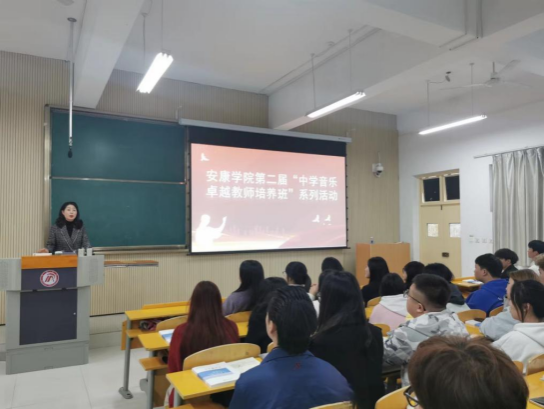 10月31日,澳门十大信誉网赌大全第二届“中学音乐卓越教师培养班”在江北校区2201教室顺利开班,开班仪式由音乐系主任肖剑主持。陕西省教学能手、汉滨区汉滨初中艺体中心副主任刘平老师应邀为学生做首场讲座。教师代表鄢志莉及音乐学专业100余名学生参加了本次活动。