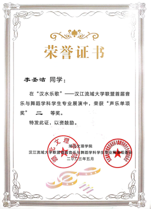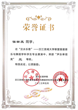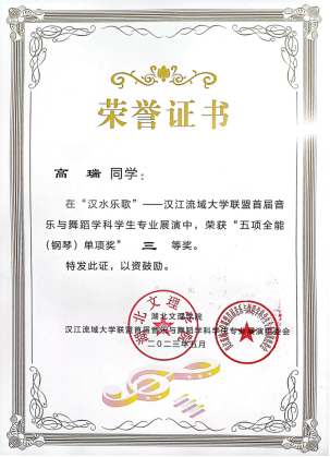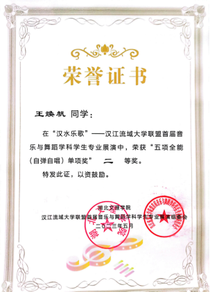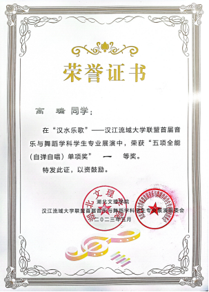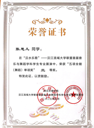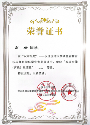 5月23日-26日,“汉水乐歌——汉江流域大学联盟首届音乐与舞蹈学科学生专业展演”活动在湖北文理学院举行。十大信誉网赌音乐学专业学生在此次展演中取得佳绩,共获得五项全能综合奖一等奖1项、二等奖1项、三等奖2项,自弹自唱一等奖1项、二等奖1项,钢琴单项二等奖1项、三等奖2项,器乐单项二等奖1项,舞蹈单项三等奖1,声乐单项二等奖2项,三等奖1项等14项奖项,充分展现了十大信誉网赌音乐学专业学生专业技能和办学质量。