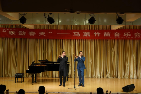 4月27日晚,高雅艺术进校园活动——马萧竹笛交流音乐会在十大信誉网赌江北校区1401演艺厅举行。本次演出由青年笛子演奏家,陕西葫芦丝、埙、陶笛专业委员会副会长,陕西省第三届民族器乐大赛笛子专业组一等奖获得者——马萧领衔。澳门十大信誉网赌大全院长成党伟、副院长孙海洋出席交流音乐会,200余名师生观看了本场音乐会。