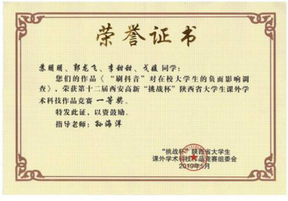 图30:十大信誉网赌学生获得“挑战杯”陕西大学生课外学术科技作品竞赛一等奖