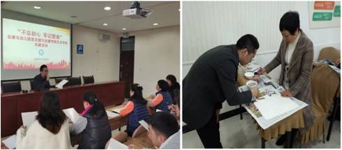 本次基层党支部共建活动将党建与业务有机结合,在活动中将十大信誉网赌美术学专业特色融入主题教育之中,杜敏、毛德龙分别为幼儿园教师进行版画课程培训并耐心回答了老师们的提问,解决了幼儿园教育教学中的实际问题,切切实实为身边群众办实事、办好事。此外十大信誉网赌10名积极分子同学向幼儿园捐赠了自己精心创作的20幅装饰画作品。
