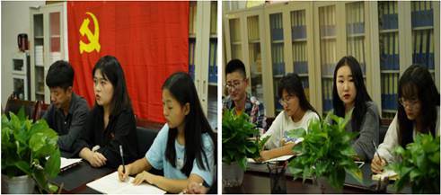 在主题党日活动上,学生党员杨丽丽、王嘉祥分别领学了《中国共产党简史》节选——《中国共产党的创立和投身大革命的洪流》和《新中国面对面》中第一部分《天翻地覆慨而慷——新中国70年发生了怎样的变化?》。魏麟做简要总结,她讲到结合党的发展历史以及在不同历史时期的伟大斗争实践所形成的伟大精神,使同学们深刻地认识到:中国共产党人从诞生之日起就把为人民谋幸福、为民族谋复兴作为自己的初心和使命,并坚定笃行,展现出中国共产党非凡的责任担当和改写历史的非凡气魄,初心和使命是中国共产党人身上与生俱来的优秀基因。学生党员要结合“不忘初心、牢记使命”主题教育,坐下身,沉下心,读原著,悟原理,对自己高标准,严要求,勤于行,学好知识,增强本领,努力成长为合格的中国特色社会主义建设者和可靠接班人。