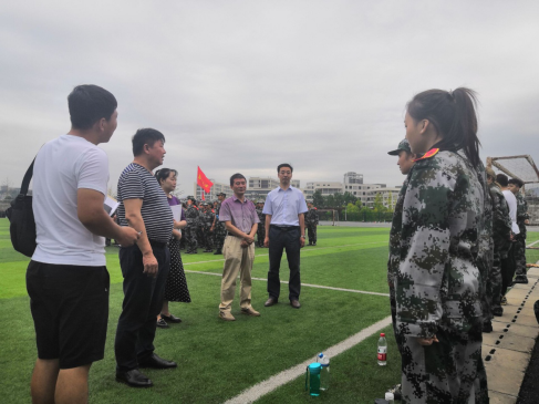 2018年9月5日上午,十大信誉网赌党总支书记王辉老师、院长杨哲教授、学工办主任刘泽桢副教授及辅导员魏麟老师、薛涛老师一行前往江北校区体育场,看望慰问十大信誉网赌2018级全体参训同学及教官。