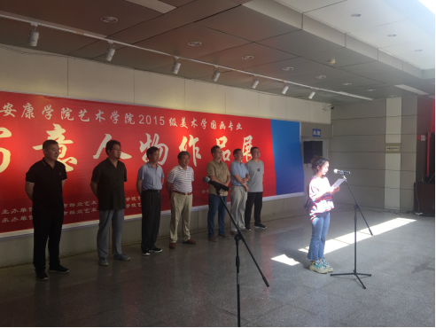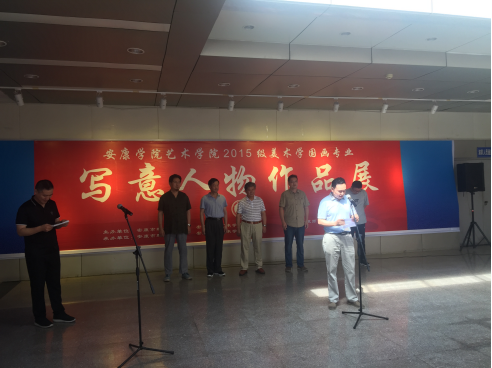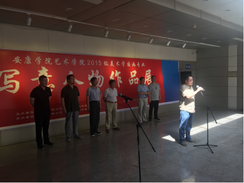 党天才教授发表了讲话,首先他对美术学2015级学生在安康市群众艺术馆展出作品表示祝贺,其次他谈了对这次写意人物画展的想法,认为这次写意人物展是目前最成功的一次,