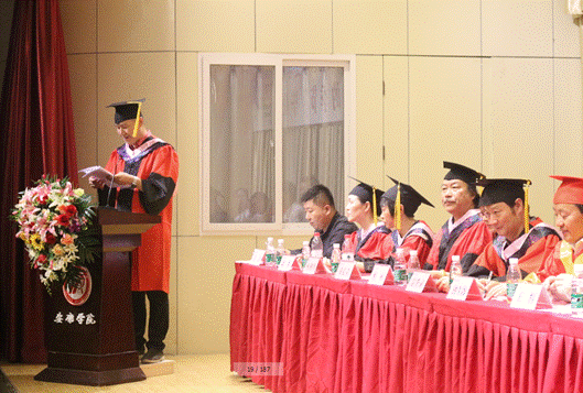 在庄严肃穆的国歌旋律中,毕业典礼正式开始。副院长雷升录代表全系师生向2017届毕业生发表了热情洋溢的致辞,他对2017届毕业生在校期间的学习、生活所做出的努力和贡献以及表现出来的优秀品质给予了充分地肯定;并深情嘱所有毕业生:这世上没有毫无道理的横空出世,所有的闪亮登场背后,都是多年苦心孤诣沉默不语的自我挑战。希望同学们毕业后能够继续努力,努力学习、努力工作、努力生活,在各自的工作岗位上作出不平凡的业绩!”