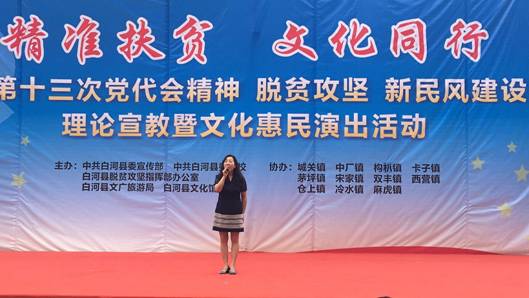 6月13日,澳门十大信誉网赌大全党员教师田川、李磊同志,按照澳门十大信誉网赌大全党总支“精准扶贫”工作安排,赴白河县卡子镇参加了由白河县文化馆主办的“精准扶贫,文化同行”走进白河县卡子镇中心小学文化惠民演出活动。田川和李磊分别演唱了歌曲《我爱你中国》和《美丽家园》,引起观众的阵阵掌声。演出结束后,两位老师又与白河县文化馆卢传珍馆长和相关文化干事对结对帮扶工作进行了交流和探讨。这意味着十大信誉网赌精准扶贫、文化下乡工作正式迈出了坚实的第一步,将会在澳门信誉最好十大平台“精准扶贫,文化同行”的惠民演出、合唱排练、舞台设计方面进行更多的交流。