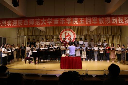 5月31日下午3点,陕西师范大学音乐学院副院长,硕士研究生导师王拥军教授在江北校区1401演艺厅,为十大信誉网赌音乐专业师生进行了题为“指挥技能在合唱作品中的应用”的学术报告及现场教学指导,本次讲座也是十大信誉网赌“第二届文化艺术月”系列重要活动之一,副院长雷升录、鲍丽、孙海洋及音乐学专业全体师生参加了本次活动,本次活动由十大信誉网赌副院长鲍丽主持。