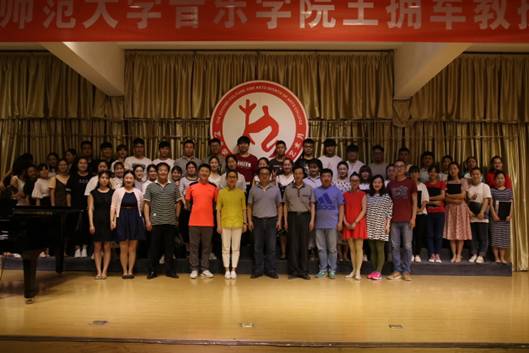 在讲座中,王拥军教授就合唱中的规范性、艺术性等问题与师生们进行了探讨,并且阐明合唱就是声音的共性的艺术,它是群体艺术的结晶。而指挥是合唱队的支柱与灵魂,指挥不仅是合唱团的组织者、领导者,而且是合唱队声音艺术表现的再创造者,同时他又是一个表演者,所以作为一个合唱指挥首先自身要具备较高的艺术修养、文学造诣及较高的艺术审美鉴赏力,方能使合唱队的训练达到科学性、思想性及艺术性内在与外在的完美协和统一。