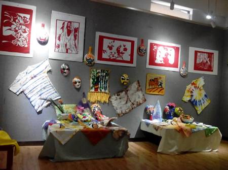 本次展览是在设计专业教师郭秀的精心指导下完成的,是艺术设计专业2012级课程作业,参展学生125人,共计千余幅作品,包括扎染、装饰性剪纸、马勺脸谱、纸藤编织、编织挂毯等创作形式,这些作品充分反映了陕西民间文化的艺术特色,展示了同学们不怕吃苦勇于创新的精神。
