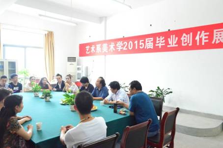 画展结束后,在艺术系办公室召开了艺术系美术学2015届毕业创作展座谈会。座谈会由章长青老师主持,部分教师和毕业生代表参加座谈会的讨论。