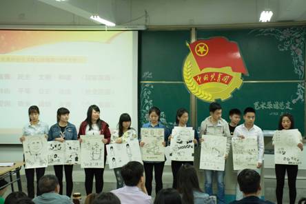 2014级视觉传达专业、美术学专业的同学更是历时一个多月,将习近平总书记的讲话绘制成一百三十多幅画作,其中的十名同学在座谈会现场向大家展示和介绍了自己的作品。同学们的作品将被制成精美画册,也是我系团总支学习习近平总书记重要讲话精神的成果和特色。
