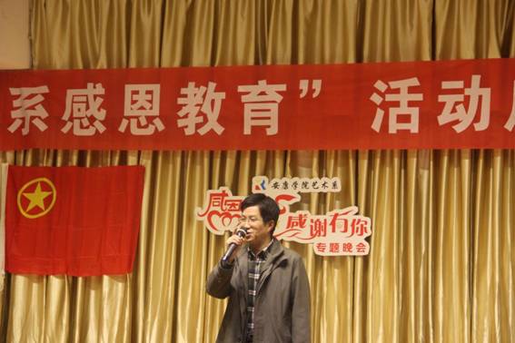 冯书记动员讲话后,团总支副书记祁宏斌代表团总支宣读《艺术系“感恩存心、感谢有你”感恩教育活动方案》。2013级视觉传达专业1班团支部书记杨泽昊同学代表各团支部向全体13级团员青年发出开展感恩教育活动的倡议。