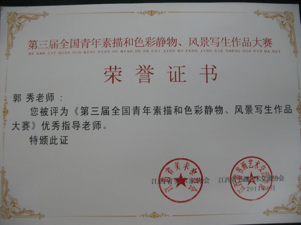 近日,第三届全国青年素描和色彩静物、风景写生作品大赛评选揭晓,大赛共评出金奖3名、银奖5名、铜奖12名、优秀奖200多名。参加此次比赛者多达5000余人,涉及26各省市,我系师生参加比赛获得佳绩,青年教师张静、王胜选及王盼盼等7名学生获得优秀奖,36名同学入选该赛。青年教师郭秀获得优秀指导教师荣誉,王胜选老师获得组织工作奖和优秀指导教师。