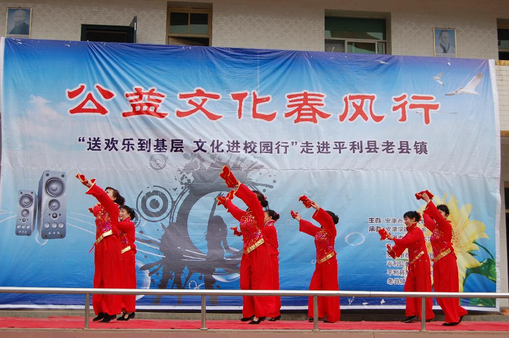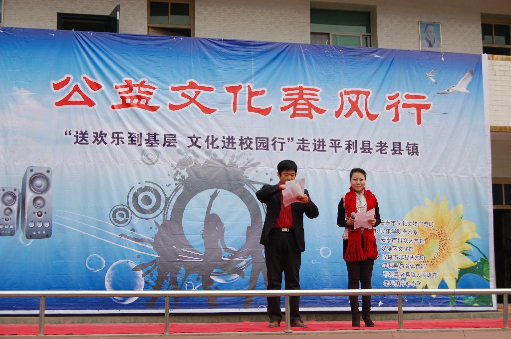 由安康市文化文物广电局主办,澳门信誉最好十大平台艺术系、安康市群艺馆、安康市青少年宫等单位承办的我市一年一度的“文化艺术三下乡”活动,于2011年1月14日在平利县老县镇拉开了帷幕,受到当地领导和群众的热烈欢迎。