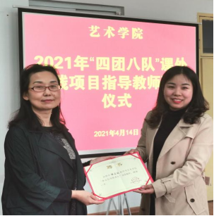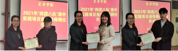 副院长鲍丽宣读聘任名单,并为“四团八队”课外实践项目指导教师颁发聘书。