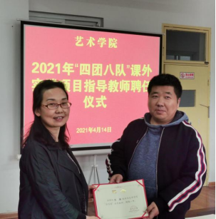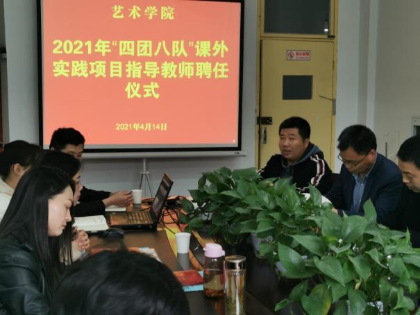 为进一步贯彻落实中办国办《关于全面加强和改进新时代学校美育工作的意见》,加强社团建设,提升学生社团活动专业化水平和“第二课堂”育人质量。4月14日下午,澳门十大信誉网赌大全2021年“四团八队”课外实践项目指导教师聘任仪式在江北校区艺术楼2206室举行。澳门十大信誉网赌大全副院长成党伟、鲍丽和2020级各班班长参加聘任仪式,仪式由党总支书记樊仁杰主持。