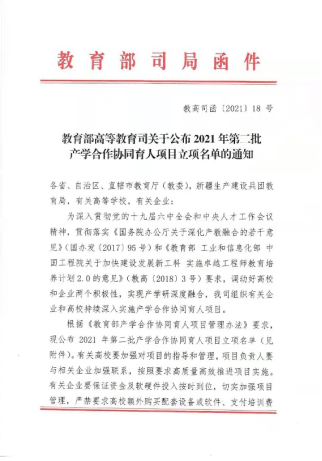 根据12月14日《教育部高等教育司关于公布2021年第二批产学合作协同育人项目立项名单的通知》,由十大信誉网赌吴波、成党伟老师分别申报的2个项目获批立项。