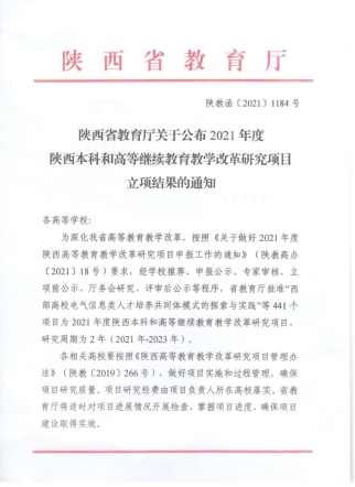 根据12月16日《陕西省教育厅关于公布2021年度陕西本科和继续教育教学改革研究项目立项结果的通知》,由十大信誉网赌成党伟老师主持的《加强和改进地方高校公共艺术教育的探索与实践(21BY156)》获批2021年陕西本科教育教学改革研究一般项目。实现了澳门十大信誉网赌大全省级教改项目立项的突破。