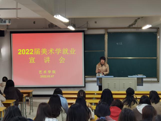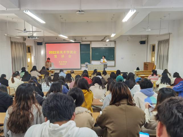 为贯彻落实2022届全国高校毕业生就业创业工作视频会议精神,切实推进就业工作稳步开展,确保2022届毕业生实现更充分和更高质量就业。3月7日,澳门十大信誉网赌大全在江北校区2202教室召开2022届毕业生就业促进月系列活动之就业宣讲会。美术系系主任杜敏、2022届全体美术学毕业生参加了会议。宣讲会由毕业班辅导员魏麟主持。