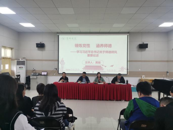 黄娟以《锤炼党性 涵养师德——学习习近平总书记关于师德师风重要论述》为主题讲授专题党课。她指出,坚定的理想信念是新时代“四有好老师”的首要标准,体现了党和国家对新时代教师在政治与职业上的双重要求,是确保教师“为谁培养人”的前提和基础。因此,从这个意义上讲,教师的党性修养、政治使命与涵养师德三者是内在统一的。全体教师要从培养未来实现中华民族伟大复兴中国梦的主力军的育人使命出发,胸怀“国之大者”,在课堂上站稳政治立场,讲党性、讲政治、讲纪律。学院在师德师风建设中将师德师风专题教育与强化党性教育相融合,用党性要求、育人使命引领广大教师提高精神境界,涵养师德师风,发挥党员教师模范带头作用,全心全意为学生成长成才服务。最后,结合教育部近期发布曝光的第九批违反师德典型案例,开展了师德师风警示教育。号召全院教师提高政治觉悟,增强党性修养,促进师德境界提升,为推进学院高质量发展凝心聚力,务实创新,用优异的成绩迎接党的二十大的召开。