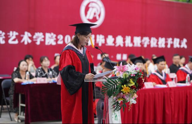 2018级美术学专业王璐璐代表毕业生对学校及老师的培养表示感谢,将不辜负老师们的殷切希望和深情嘱托,初心不改、牢记使命,做新时代有志青年、逐梦而行,成就更好的自己,为母校争光添彩。