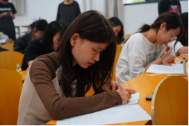 本次竞赛以现场答题的方式进行比赛,考题主要由基础题和综合题目两部分组成。其中,综合题目中的案例分析题,密切结合大学生在学校生活中可能遇到的问题和情景,着重考察了学生对心理知识的掌握和自我心理的调控、支配能力。答题现场紧张且秩序井然,同学们有序参与、沉稳答题。