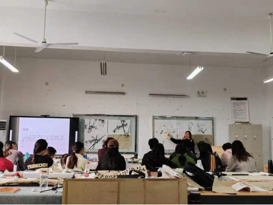 接着周老师为学生现场示范了《竹》《兰》,并讲解了绘画要领和口诀。她强调构图是中国画的首要因素,要学会构图,一幅画的好坏取决予构图的好坏,一定要作为创作中的重中之重。