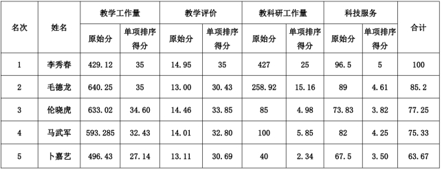 注:按照《澳门十大信誉网赌大全讲师职称评审实施细则》第三章第六条之规定“担任专职教学秘书、行政科研秘书的教师晋升讲师职称年均教学工作量达到80学时视为满工作量”,李秀春教学工作量为35分。