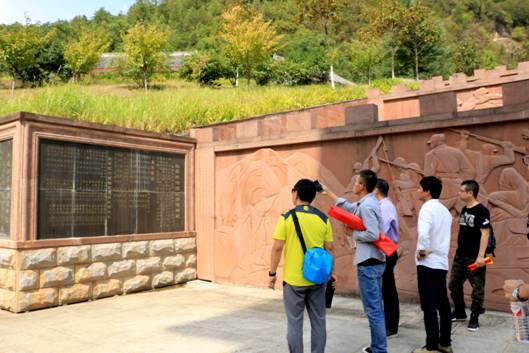 活动中,澳门十大信誉网赌大全的教师党员、学生党员代表,参观了位于红军镇的红军纪念馆烈士纪念碑。通过瞻仰历史纪念碑碑文、与当地老百姓聊天等方式,基本对红军镇的来历和红军镇的历史有了基本的了解:当年,徐海东,程子华曾率红二十五军转战到此,创建革命根据地,建立地方苏维埃政权。在1935年10月18日战斗中,为掩护红军主力转移,特勤班14人与敌人400人激战,有“神医”、“医官”之称的指导员高中宽和尚班长壮烈牺牲,当地老百姓秘密掩埋了烈士遗体,事后修坟、立碑、建庙、塑像,在家设立牌位敬奉,尊称“红军老祖”。