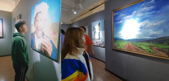 此次展览作品涵盖了国画、油画、水彩、工笔等作品六十余幅。其中有欧歌时代气息的政治作品,描绘人物故事的主题创作,也有水彩风景写生作品。本次观展活动,进一步丰富了学生们的文化生活、激发了同学们的学习热情、培养了同学们对书画作品的鉴赏水平,无论是对同学们艺术情感的培养还是同学们的身心健康发展都具有深远的意义。