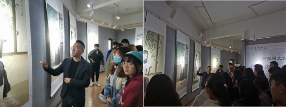 活动伊始,李秀春老师介绍了本次艺术文化月活动情况及本次展览的主题随后,毛德龙老师就中国近现代中国美术史的发展,以及美育时代背景下如何提升自身的审美水平进行了讲解与引导,和同学们一起从前沿开始,了解了历届师师姐的创作思想情感和艺术追求。对不同画种的创作,从构图、色彩、技法的变化与思想情感的联系,着重于画面整体布局及情感元素,给同学们进行了解说。他表示:美是纯洁道德、丰富精神的重要源泉,要求同学们要热爱生活,用眼去发现美、欣赏美,用心去感受美、认知美。